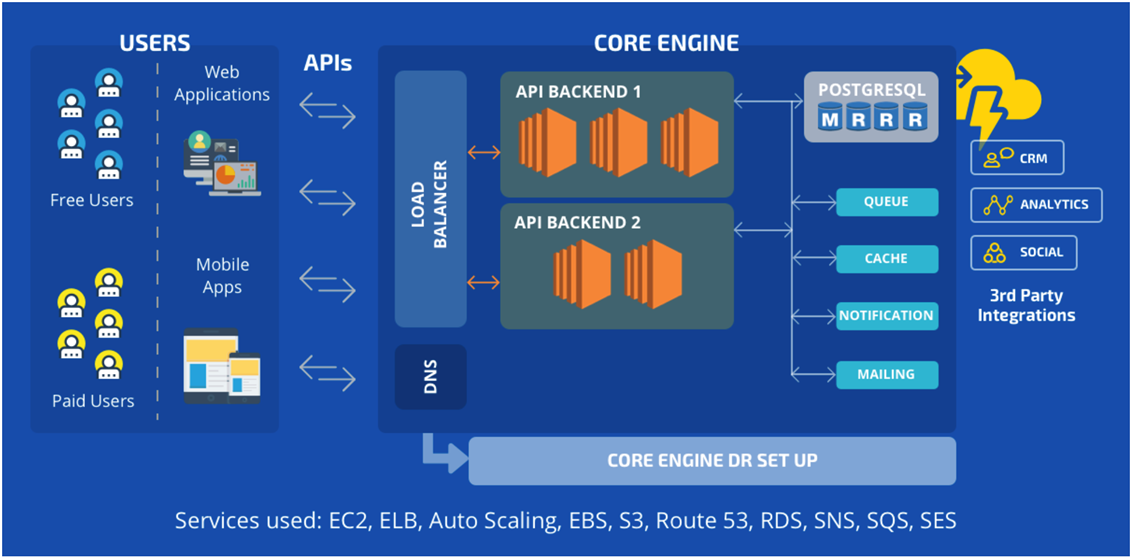 We were hired to take a comprehensive look at the client’s infrastructure on AWS and architect a scalable infrastructure to support scaling up to 2 million end users and also suggest improvements to the application design.